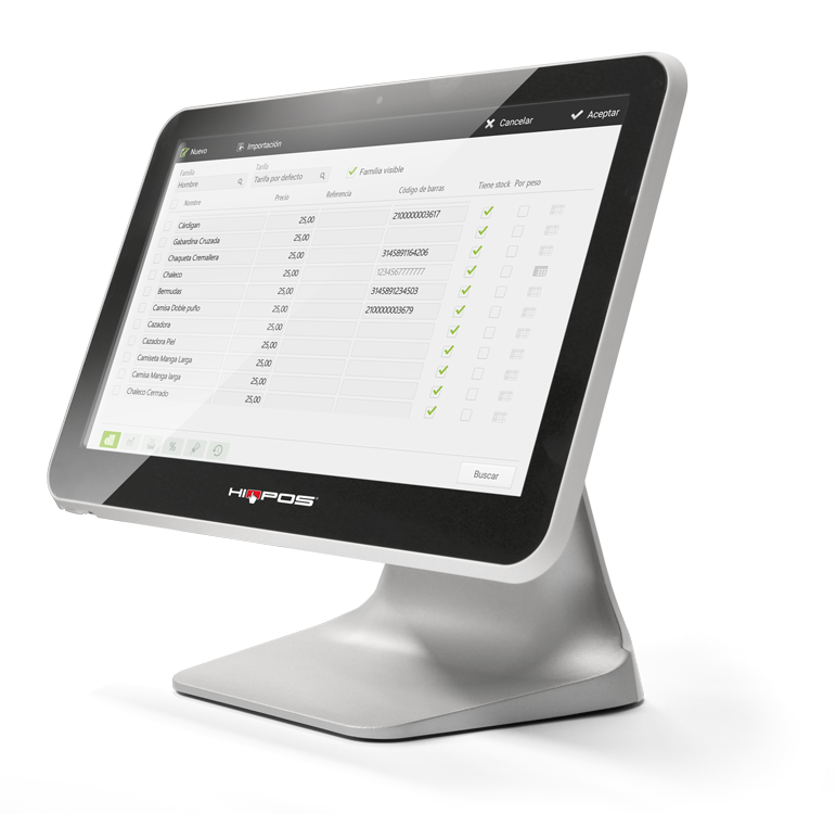 HIOPOS te permite crear productos automáticamente con sólo leer su código de barras: descripción, imagen, referencia y precio entre muchos de los campos de creación directa.