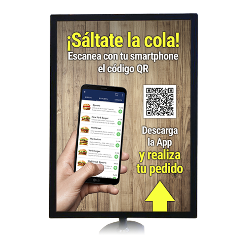 El cliente realiza y paga el pedido desde su propio smartphone escaneando un código QR.