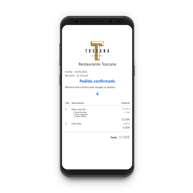 Con el módulo de pedidos, el cliente puede acceder a la carta del restaurante, consultar los productos disponibles, informarse de su detalle, realizar el pedido, elegir dónde quiere recogerlo o ser enviado y pagarlo con el móvil.