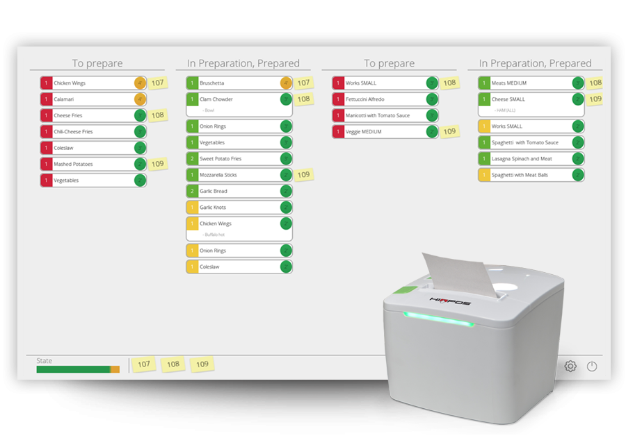 El sistema de pantallas de cocina que te ayuda a optimizar la gestión de tu restaurante recibiendo los pedidos tomados en la mesa o en la barra y que te permite gestionar la preparación de los mismos e informar de una forma visual del estado de cada uno de los platos. HIOSCREEN dispone de tres visualizaciones distintas: pantalla de cocina, pantalla de tareas y pantalla de pedidos.