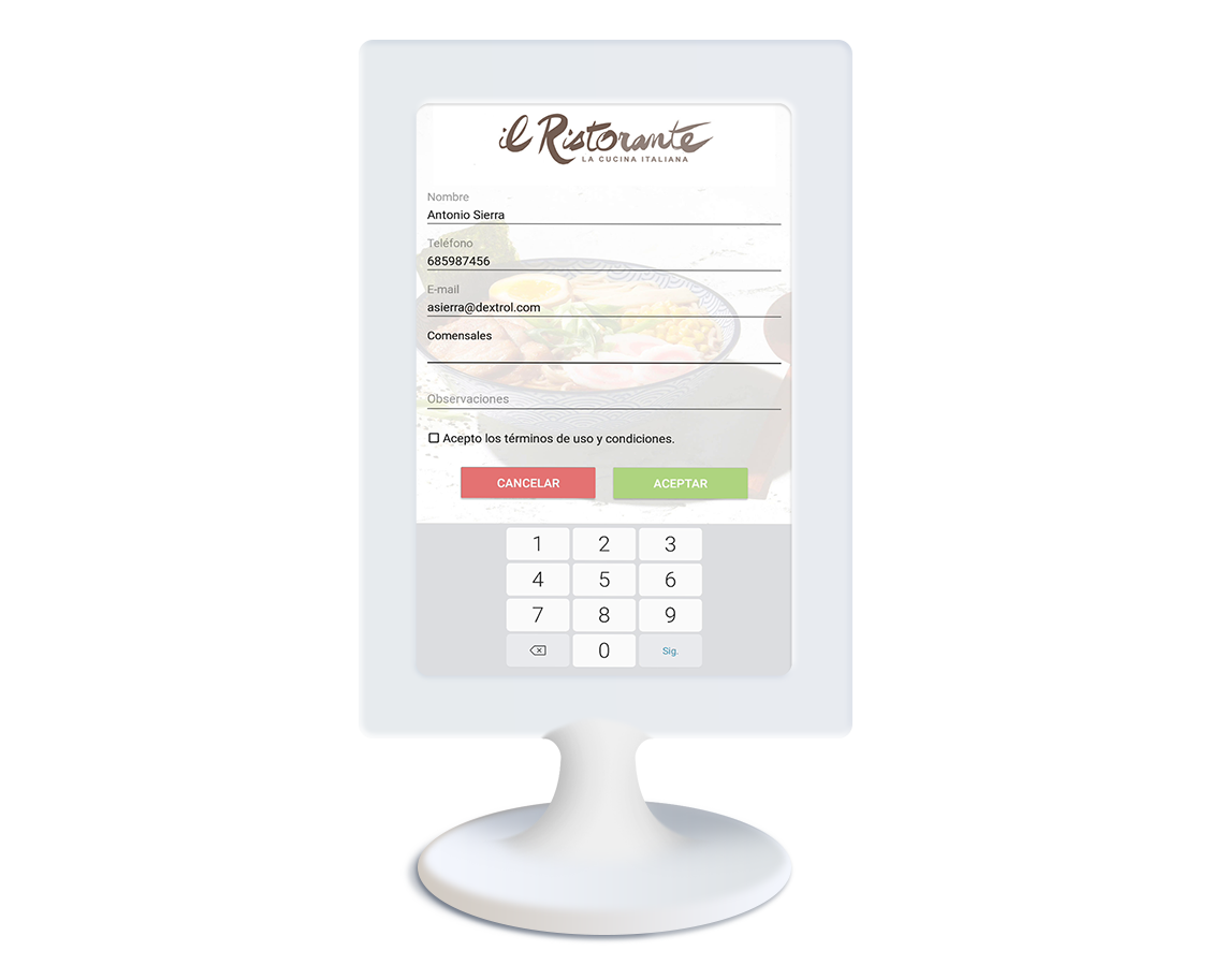 No pierdas clientes. Si tu restaurante está lleno, crea listas de espera a través de la aplicación Sitting, registrando los datos de clientes finales en una tablet a fin de poderlos avisar vía SMS cuando la mesa esté libre en tu restaurante. Sin costosos elementos adicionales que se rompen o se pierden.