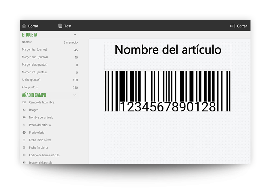 Imprime etiquetas fácilmente para tus artículos. Con HIOPOS puedes configurar distintos diseños de impresión de etiquetas y asociarlos a tus artículos. Automatiza la creación de los códigos de barras con nuestra funcionalidad de autogeneración.