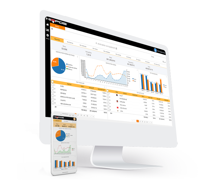 Recibe a tiempo real todas las ventas, cierres de caja, etc., actualiza de forma centralizada productos, precios, ofertas y controla el stock en el almacén.