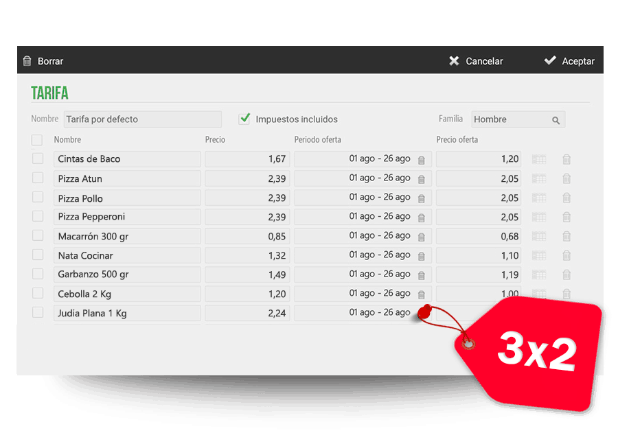 Consigue que tu negocio prospere día a día con la gestión de los períodos de oferta. Crea tarifas especiales y establece periodos de ofertas.