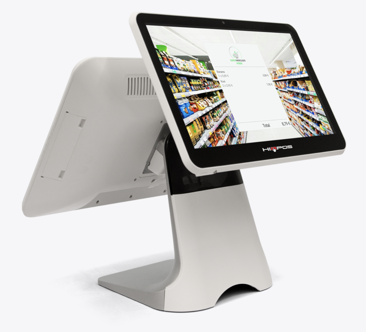 Con el Terminal Punto de Venta HIOPOS, utiliza la segunda pantalla de cliente para mostrar el tiquet de venta, anunciar promociones y mostrar vídeos publicitarios de productos y ofertas.